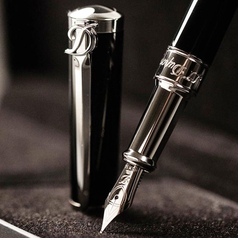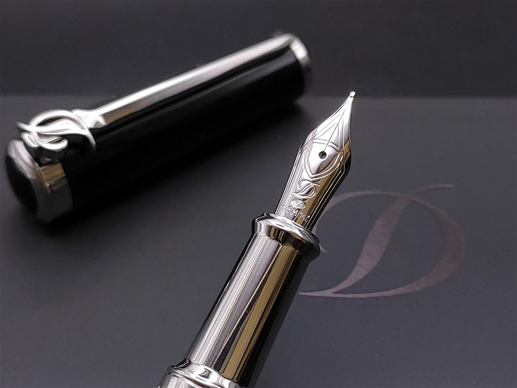 法國 S.T. Dupont Sword 系列 – 天然黑漆銀色劍型筆夾 14K 金筆咀墨水筆 (290102)